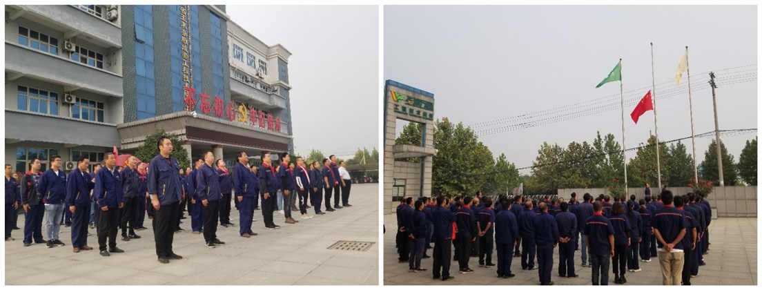 九月三十日早七點(diǎn)三十分,華豫萬(wàn)通全體員工列隊(duì)公司廣場(chǎng)。員工們整齊著裝,氣宇軒昂,七點(diǎn)四十分旗在雄壯的歌聲中冉冉升起,全體員工高唱歌,并行注目禮。
