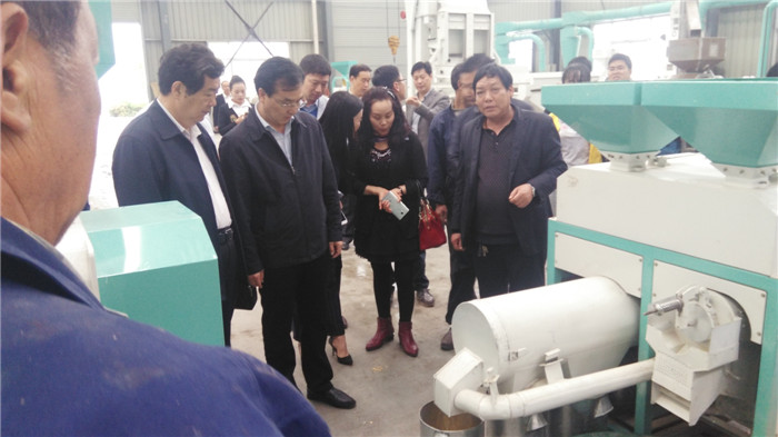 商會多個企業(yè)董事長觀看玉米加工小型設(shè)備加工過程