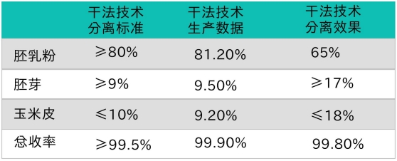 隨著設(shè)備創(chuàng)新和光電自控水平的提高,通過(guò)先進(jìn)的工藝過(guò)程,成功高效分離出脫脂玉米粉、胚芽、玉米皮,分離效果好于濕法;